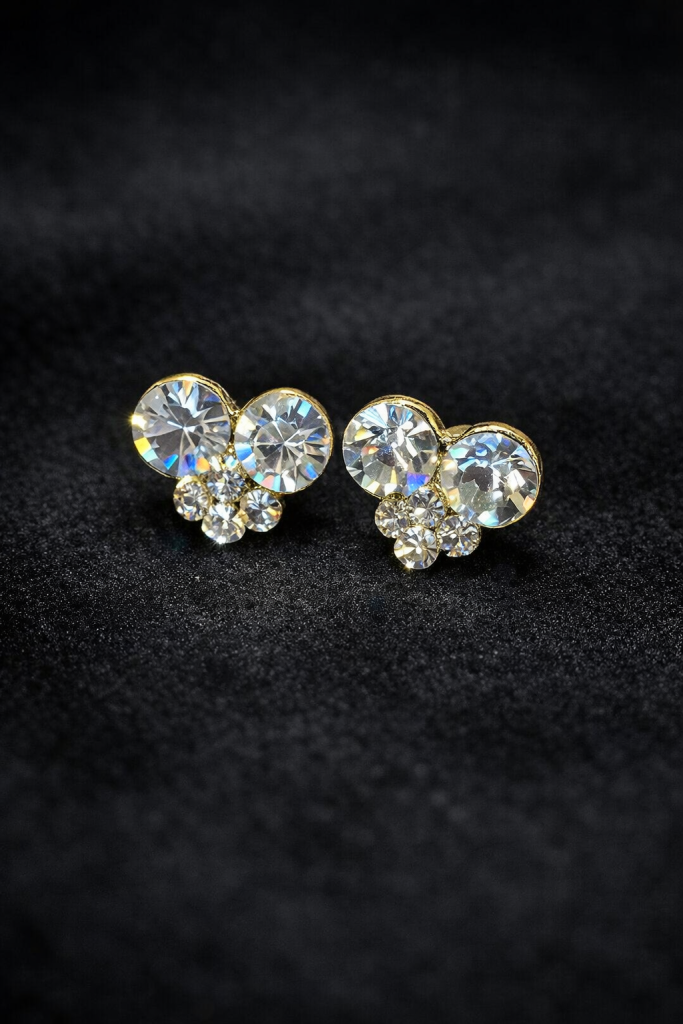 Estos aros destacan por su diseño delicado y luminoso. Cada pieza está compuesta por cristales redondos y facetados que forman una mariposa, reflejando la luz con destellos iridiscentes. Su montaje en tono plateado aporta un toque sofisticado, ideal para complementar looks elegantes o románticos.