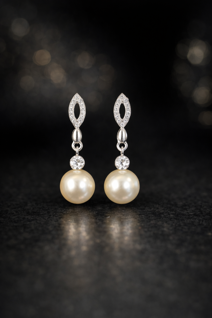 Estos aros combinan la elegancia atemporal de la perla con el destello moderno de la zirconia. El diseño comienza con una forma marquise engastada en microzirconias, seguida por una piedra redonda brillante que culmina en una perla cremosa de acabado nacarado. La caída delicada y el juego de texturas los convierten en una pieza ideal para ocasiones especiales.