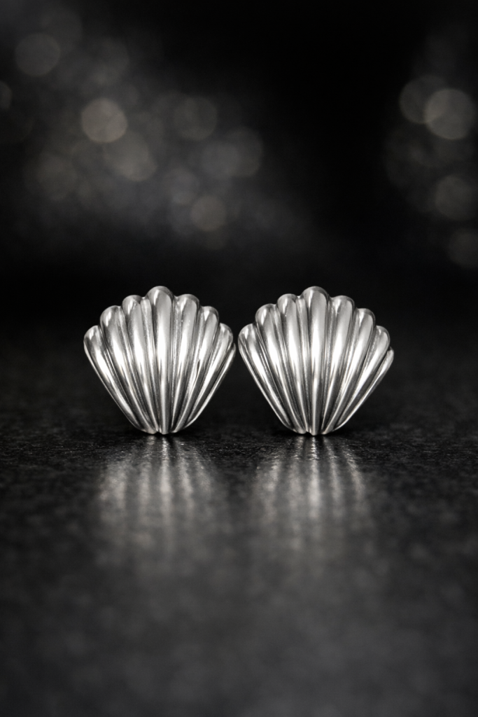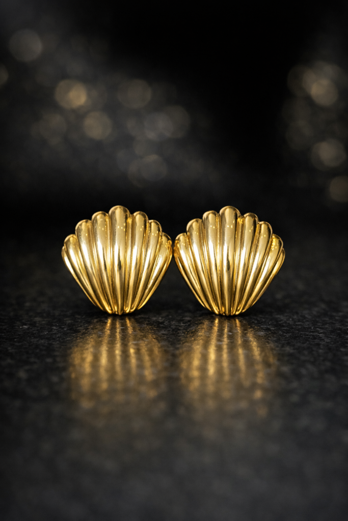 Inspirados en la forma natural de las conchas, estos aros combinan textura y brillo en una pieza sofisticada. Cada línea curva evoca el movimiento del mar, disponibles en 2 tonos.