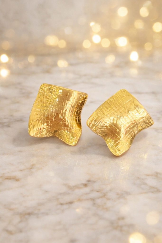 Aros dorados de diseño abstracto, texturizados.