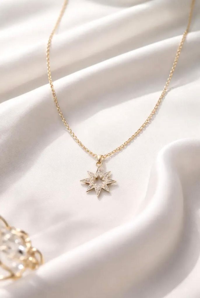 Collar más colgante en forma de Estrella dorada con brillantes, aportan luz y elegancia a cualquier oufit.